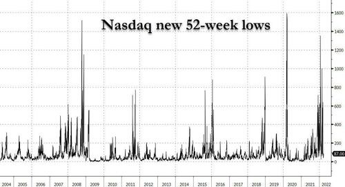 與此同時,標普 500 指數最近出現了令人印象深刻的反彈,但 52 周以來,出現的新低點多於新高點。這(幾乎)只會發生在熊市。