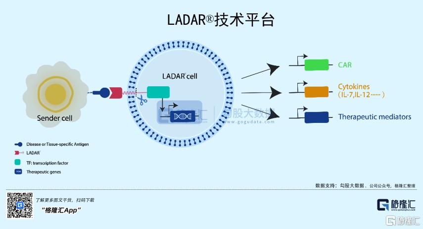 (3)LADAR®技術平台:精準靶向的技術平台,開發 CAR-T 細胞的強大工具,可以降低在靶脱瘤毒性並擴大靶向可用性,此外還有望應用於細胞因子和其他治療介質的精準輸送。
