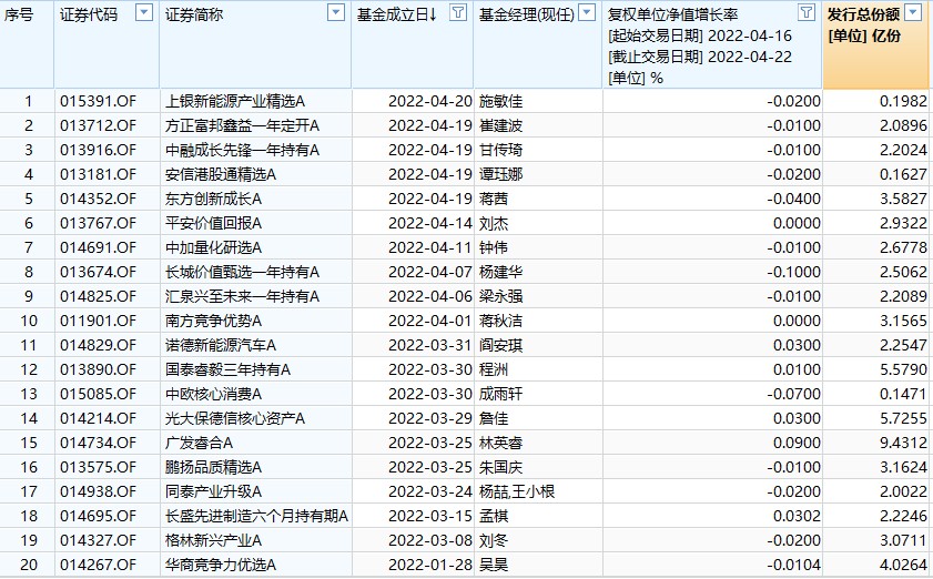 2022 年成立的主動偏股基金,近一週(截至 4 月 22 日),有 20 只周波動在 0.1% 以內。它們的管理人不少也是明星基金經理。