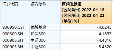 剛過去的一週,被用做業績比較基準重要指標的滬深 300、中證 800 跌幅都超過了 4%,中證 500 跌幅甚至超過了 5%。偏股基金指數跌幅也超過了 4%。