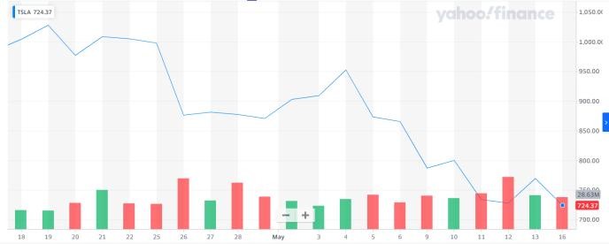 特斯拉近一个月来股价连连下跌(图源:雅虎网站)