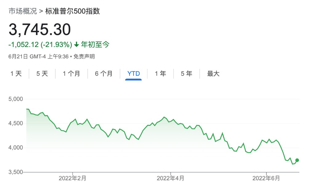 截至目前,標普 500 指數今年以來已經下跌 22%。