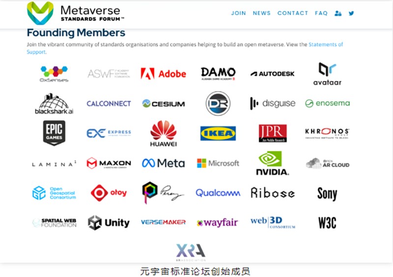“元宇宙標準論壇” 在成立聲明中表示,參與者包括 Meta、微軟、Epic、英偉達、高通、索尼等 36 家投身元宇宙領域的科技巨頭,行業覆蓋芯片製造商、遊戲公司以及像萬維網聯盟(W3C)這樣的老牌標準制定機構等。中國的華為和阿里巴巴達摩院也在創始成員名單之中。