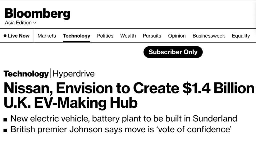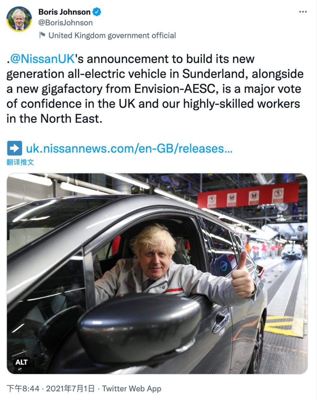 2021 年 7 月 1 日,英國桑德蘭。日產首席運營官 Mike Hawes 在這天對記者説:「這個項目是英國汽車復興的象徵」。