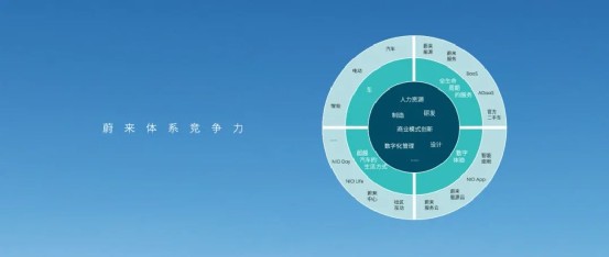 至此,蔚來補齊了圓形「蔚來體系競爭力」圖的 30°——智能、電動、汽車,是蔚來「車板塊」的三大核心。