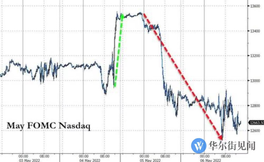 5 月 4 日 FOMC 會議當天,納斯達克 100 指數上漲 3.41%,隔日回吐全部漲幅