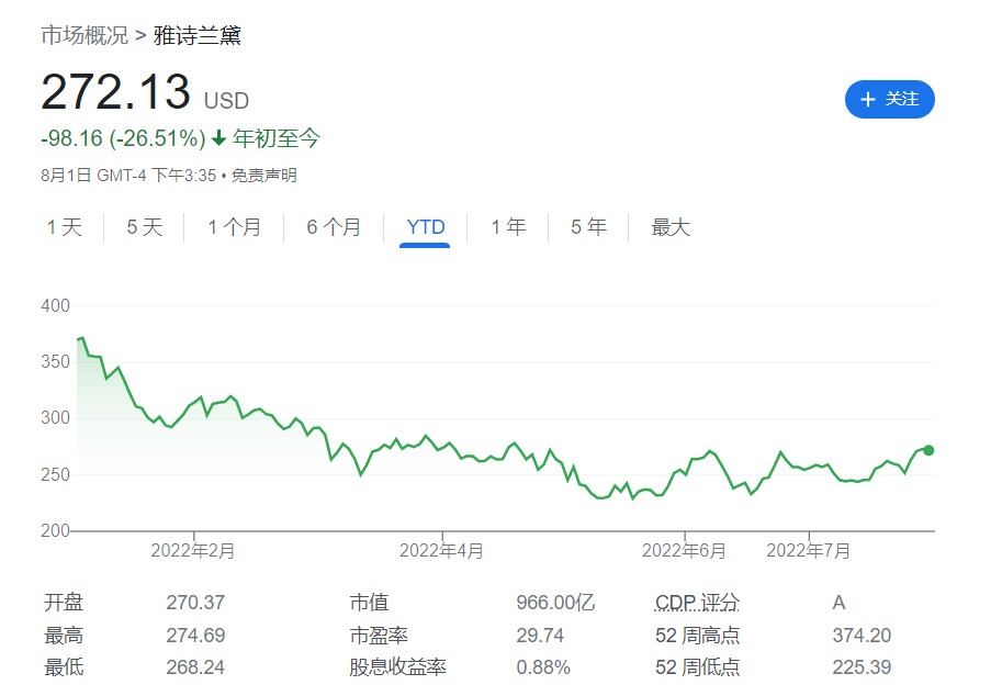不過,雅詩蘭黛今年以來已經隨大市下跌超 25%。