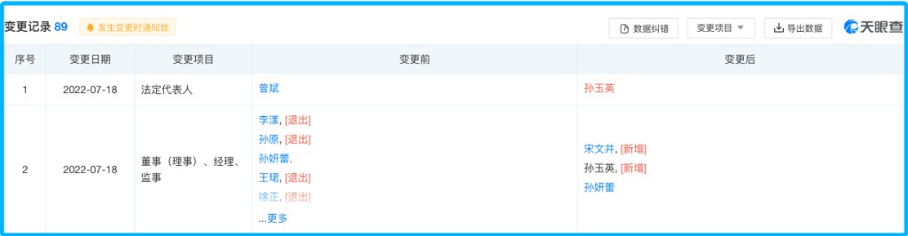 天眼查顯示,7 月 18 日,每日優鮮原法定代表人曾斌卸任,CEO 徐正、原 CFO 王珺等管理層也退出 “主要人員”,新增孫玉英為法定代表人、執行董事、經理。