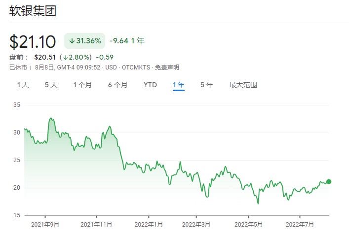 今年以来,软银美股股价累计跌去了 12%,日股股价累计上涨近 5%。