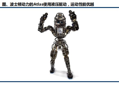 液壓、電機和氣動驅動方式各有特點,其中電機驅動最為傳統,技術進步迭代速度快,全球應用範圍廣;液壓驅動難度高,液壓閥難度極高,系統成本非常昂貴,機器人運動性能最優秀;氣動驅動性能介於液壓和電機直接,目前應用相對較少。