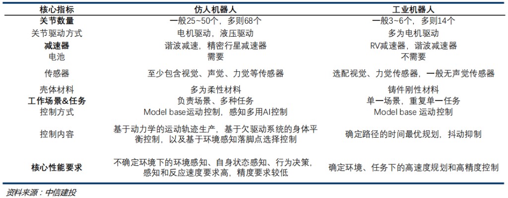 但無論是從研發設計角度,還是規模量產角度,仿人機器人與工業機器人差異非常大,在結構設計、硬件構成、控制算法、核心性能要求以及零部件選擇上都有很大的差異。