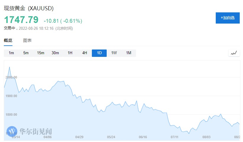 美國 7 月核心 PCE 同比創去年 10 月以來最小增幅。美元指數短線走低超 20 點,現報 108.10;現貨黃金短線拉昇約 5 美元,現報 1751.16 美元/盎司,美股期貨短線拉昇,納指期貨跌幅收窄至 0.1%。