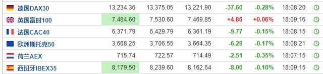 斯托克歐洲 600 指數有望連續第二週下跌,歐洲斯托克 50 指數跌 0.17%,德國 DAX 指數跌 0.28%,英國富時 100 指數漲 0.06%,法國 CAC 40 指數跌 0.15%。