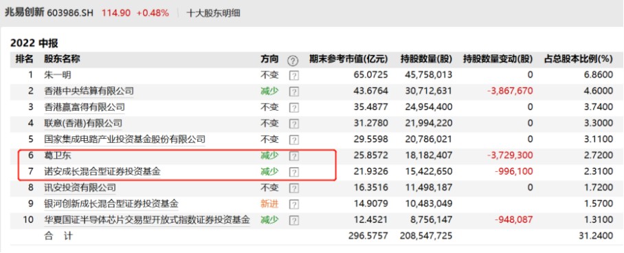 從去年年報、今年中報來看,大佬葛衞東、科技明星基金諾安成長仍在持續減倉。