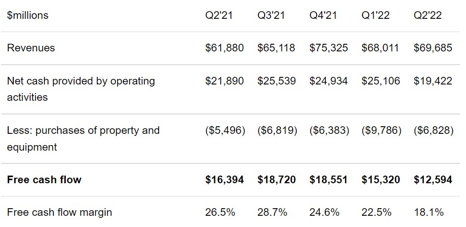 那麼,谷歌需要多少自由現金流才能償還 700 億美元的股票回購呢?據悉,谷歌在過去四個季度創造了 652 億美元的自由現金流。平均每個季度產生的自由現金流為 163 億美元,即每月 54 億美元。若想要執行谷歌 700 億美元的股票回購,則需要該公司目前 1 年多一點的自由現金流 (確切地説,是 13 個月)。