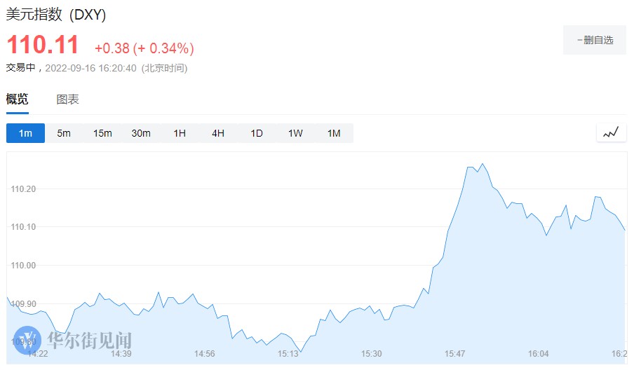 繼昨日美元指數反彈至略低於二十年高點的高位,今日美元指數仍在走高,日內一度漲 42 點,目前報 110.11。