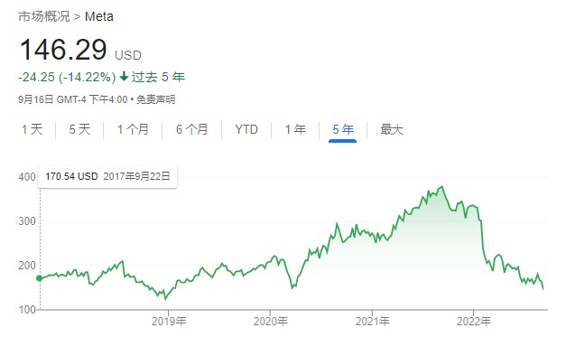 在本週暴跌 14% 後,Facebook 母公司 Meta 股價已處於 2020 年疫情爆發以來的最低點。Meta 股價在過去 12 個月裏下跌了 61%,是美股主要大型科技公司中跌幅最大的,整體跌幅是納斯達克綜合指數同期跌幅的 2 倍。