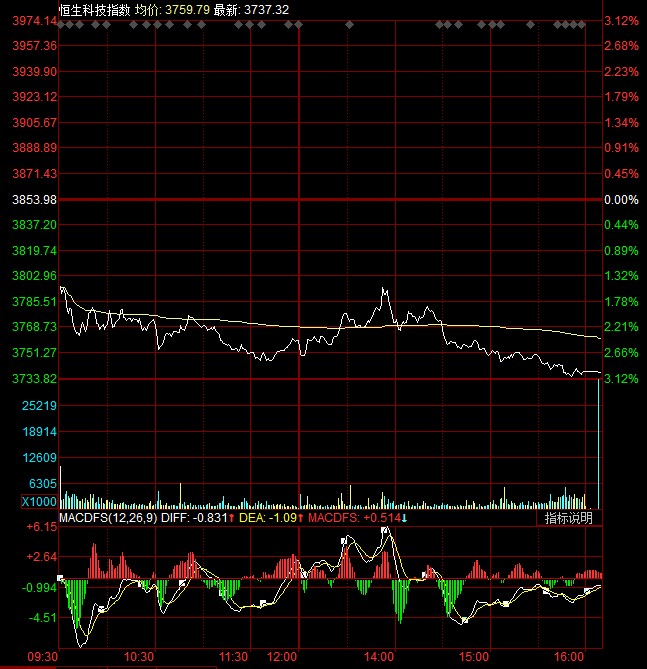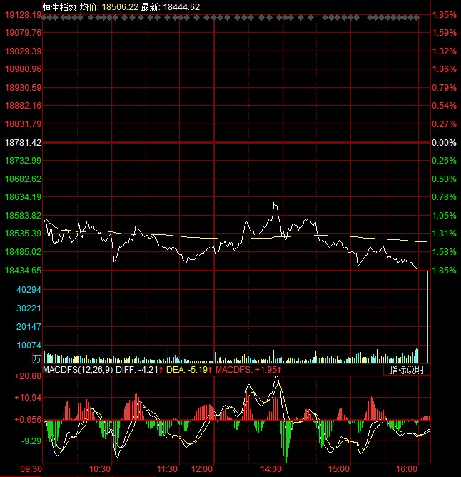 恒指收跌 1.8% 科技、汽车全天走低 海运逆势上涨 中远海能涨超 10%