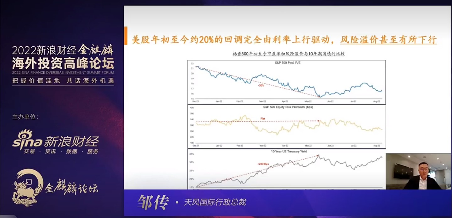 9 月 23 日,由新浪財經主辦,證券日報作為戰略合作媒體,合力打造的 2022 新浪財經海外投資峯會盛大開幕,本次論壇有幸邀請到納斯達克、新交所、香港貿發局等機構的代表致辭,並邀請了包括沈明高、肖耿、韓竹、陶冬、姚遠、張憶東 、梁文濤、黃亮等海內外知名學者、經濟學家等共聚於此,眼觀全球局勢,緊扣市場脈搏,探討大灣區機遇,碰撞智慧火花,為投資者奉上了一場財富盛宴。天風國際行政總裁鄒傳發表主旨演講,他表示,我們對於美國有望擺脱現在的能源危機的困擾,和歐洲盟友一樣完成軟着陸的預期並不樂觀。過去 40 年,直到疫情初期逐漸走低且可控的通脹是西方寬鬆貨幣政策的基礎,寬鬆貨幣政策無心破釜沉舟完成這個結構性改革。