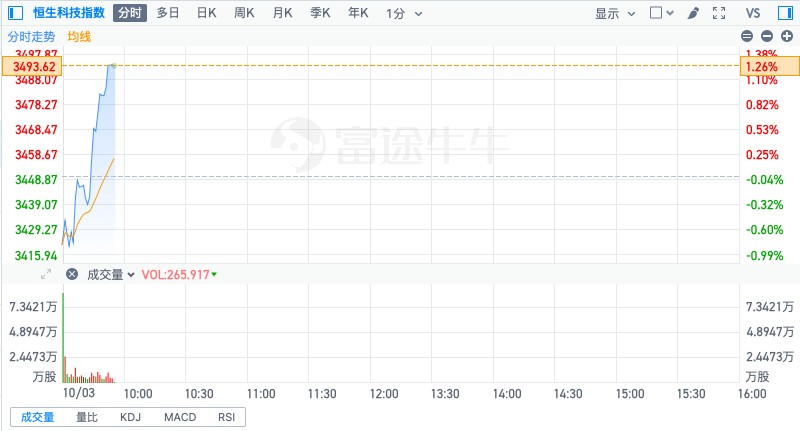 10 月 3 日週一,港股開盤下跌,恒生指數開跌 1%,恒生科技指數跌 0.78%。