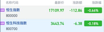 恒生指數和恒生科技指數雙雙轉跌,恒指跌 0.6%,恒生科技指數跌 0.18%。