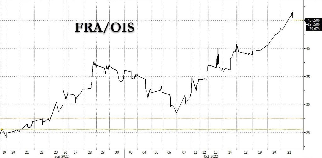 而伴隨着美聯儲持續政策收緊,美元持續走強。銀行間市場所面臨的壓力也越來越大:體現銀行間市場融資緊張狀況以及貨幣市場風險的最重要指標之一——FRA-OIS 利差再次飆升至 2022 年來的新高,也是最好的例證。