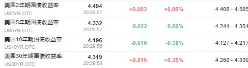 美債波動不大,美國 10 年期國債收益率日內下行 2 個基點。