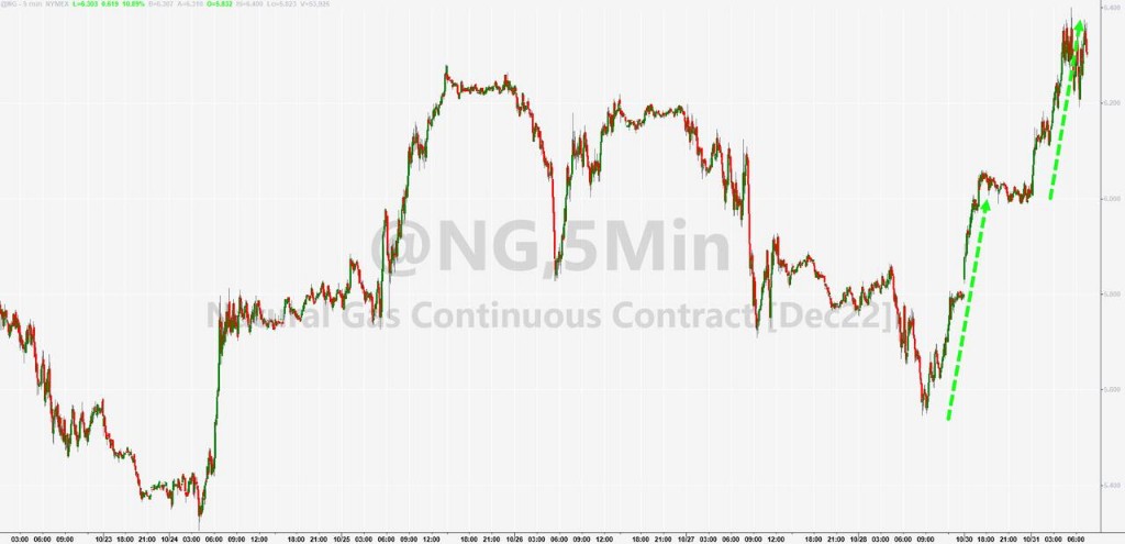 市場分析稱,天然氣價格上漲突顯出交易商對潛在的寒潮有多麼敏感,因為低於正常水平的天然氣庫存和大量的出口引發了人們對供應是否足以滿足寒冷冬季需求的擔憂。