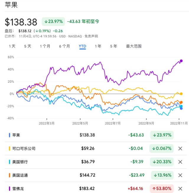 今年以來,美國運通、蘋果、美銀的股價均出現了兩位數跌幅,但三季度較二季度總體跌幅有所收窄。與此同時,由於俄烏衝突給能源供應帶來壓力,導致石油價格飆升,雪佛龍今年以來上漲了 54%,為投資組合提供了一些支撐,二季度財報發佈時雪佛龍年初以來的漲幅為 21%。