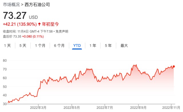 此外,伯克希爾第三季度首次將西方石油的業績納入財報。到第三季度末,伯克希爾將其在西方石油的持股增加到 1.945 億股,佔該公司普通股流通股的 20.9%。西方石油股價年初以來的漲幅達到 136%。