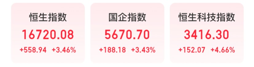 截至發稿,恒生科技指數漲超 4%,恒指漲超 3%。盤面上,礦業、醫藥、半導體股漲幅居前。