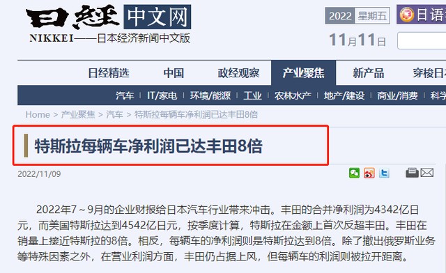 高盛證券的湯澤康太表示「7~9 月的利潤下滑,並非豐田實質盈利能力的下降」。如果觀察營業利潤,豐田為 5627 億日元,仍高於特斯拉的 5089 億日元。