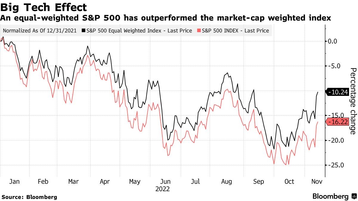 權重相等的標普 500 指數的表現優於現在的市值加權指數