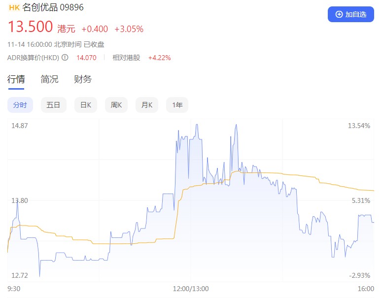 財報發佈後,名創優品美股盤前漲 3.11%,今日港股收漲 3.05%。