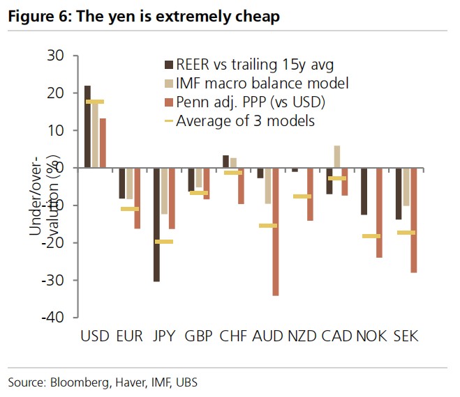 並且無論日元走強的幅度有多大,所有傳統模型仍指出日元是目前 G10 集團中表現最為失調的貨幣。