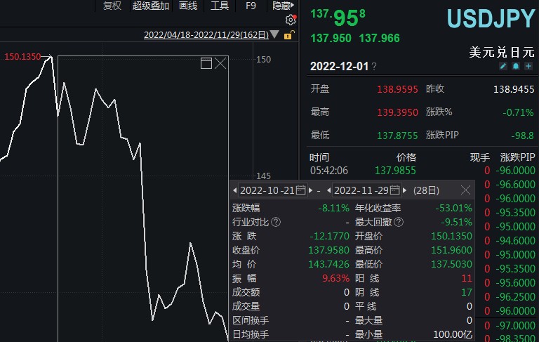 野村證券在 11 月 25 日發佈的報告中表示,在美國 10 月 CPI 數據超預期放緩後,市場關於日元匯率觸底的觀點被逐步強化。展望 2023 年,野村表示在沒有出現重大貿易條件改善和生產率增長的情況下,預計日元匯率將上行至 125-130 之間,而觸及 100 的可能性則比較有限。