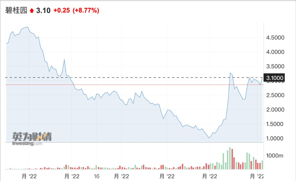 同時,碧桂園港股股價也出現了大幅波動,從 6 月 30 日的 4.95 港元跌至 11 月 1 日的 1 港元。但隨後碧桂園股票開始大幅反彈,在中資地產指數中表現居前,同期地產指數上漲超 51%。碧桂園已從 11 月 1 日的 1 港元反彈至 12 月 5 日的 3.10 港元,反彈幅度超 200%。