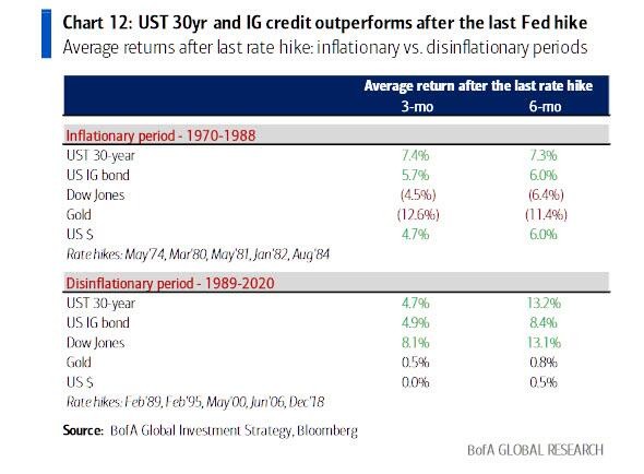 以往的經驗是 “在最後一次加息時買入”,而高通脹時代的策略是 “在最後一次加息時賣出”。