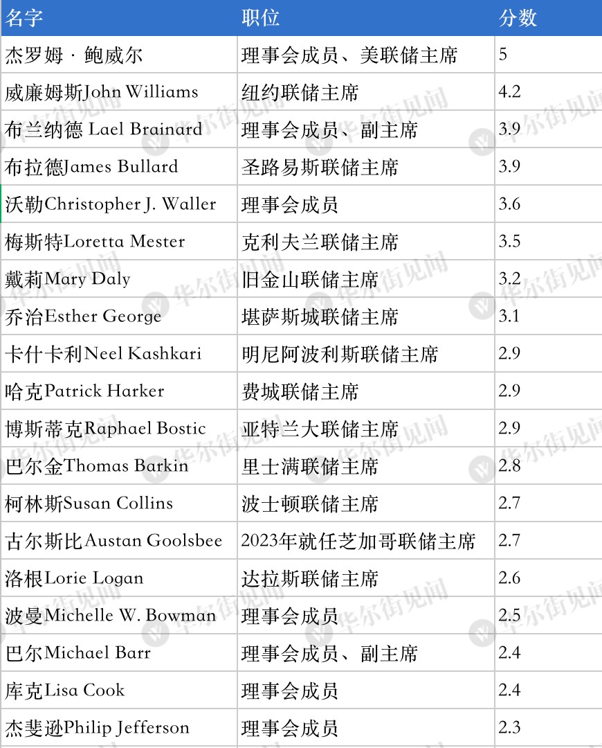 記住這幾個名字:紐約聯儲主席威廉姆斯,美聯儲副主席布蘭納德,“鷹王” 聖路易斯聯儲主席布拉德,還有同樣鷹派的美聯儲理事沃勒。