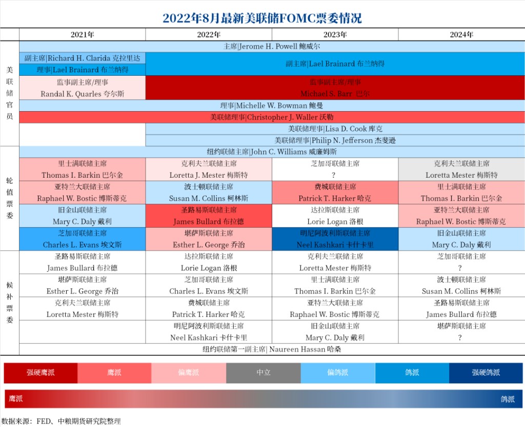 除了上述這三位,聖路易斯聯儲主席布拉德和美聯儲理事沃勒也被認為是重要角色。這兩人都是鷹派成員,布拉德甚至被稱為鷹王,兩人一直在呼籲採取更積極舉措對抗40年來最頑強通脹。