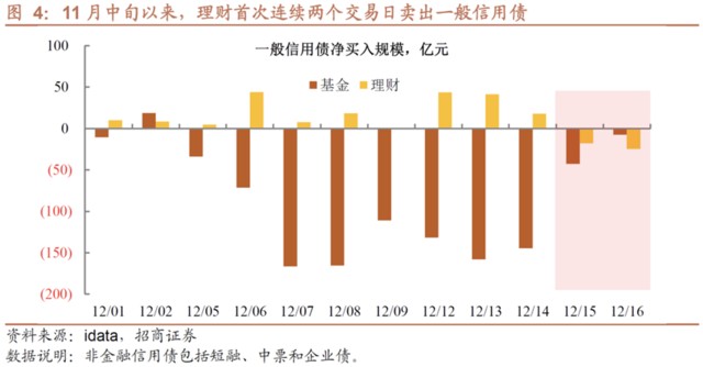 此外,非金融信用債的操作上,基金作為大規模淨賣出 “常客” 之外,理財近期連續兩個交易日同樣有賣出行為,這是繼 11 月 14 日之後,再次出現這樣的情況,負債端問題可見一斑。