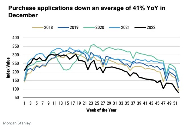 James Egan 等摩根士丹利分析师在 1 月 5 日的研报中表示,美国房价预计将在 2023 年下跌 4%,成为 2012 年以来首次同比下降。