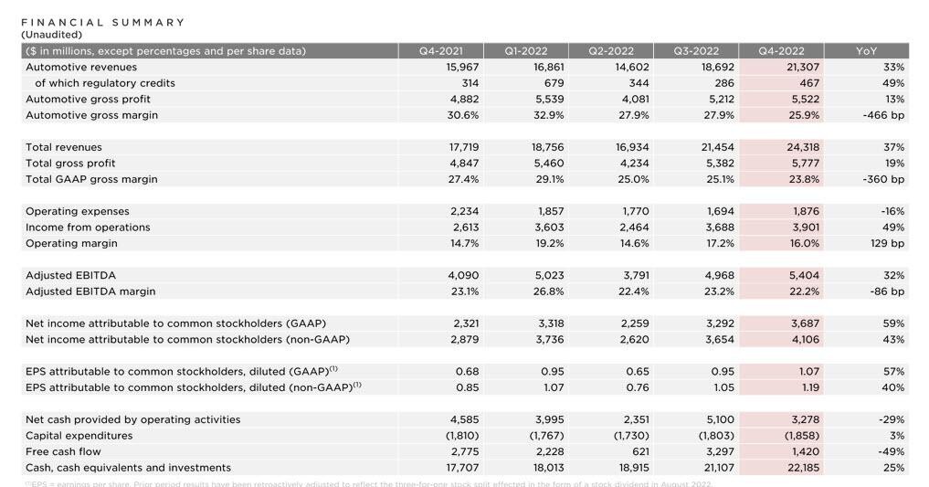 美元走強繼續打擊科技巨頭,打價格戰的特斯拉也未能倖免。去年最後一個季度,特斯拉銷售汽車的毛利率未能扭轉持續下降的勢頭,但收入繼續創新高,和利潤均超預期增長,並對樂觀預計今年的生產增長將超過長期年均目標。