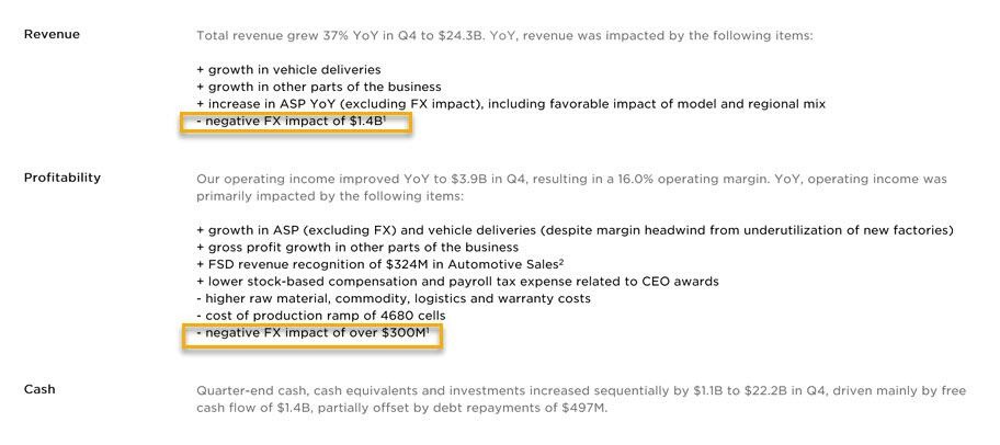 強美元繼續打擊,特斯拉四季度收入利潤超預期創新高,但汽車毛利不升反降 | 財報見聞