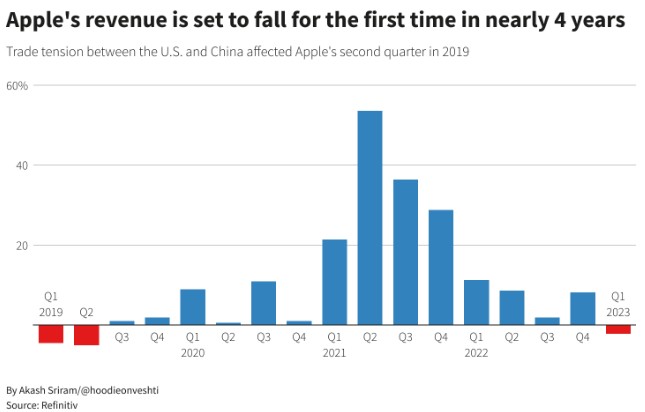 智通財經 APP 瞭解到,蘋果 (AAPL.US) 預計將報告近四年來季度收入的首次下滑,此前嚴格的疫情防控措施打擊了公司最大供應商富士康的 iPhone 生產活動,投資者也正關注有關首席執行官蒂姆·庫克 (Tim Cook) 如何在經濟衰退中提振公司市場需求的詳細信息。而需求的疲軟導致了科技行業的大規模裁員,而蘋果由於疫情期間的招聘放緩,目前暫時避免了行業大規模的裁員潮。