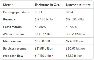 (自 10 月以來,分析師部分下調了對蘋果 Q1 業績的預測)