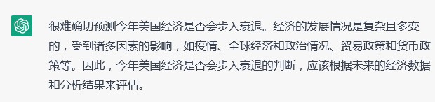 值得一提的是,我們發現 ChatGPT 財經方面的 “知識儲備” 大多侷限在 2021 年以前,在提問過程中,當我們問它美國當前的通脹率和利率水平時,它給出的答案均為兩年前的數據。