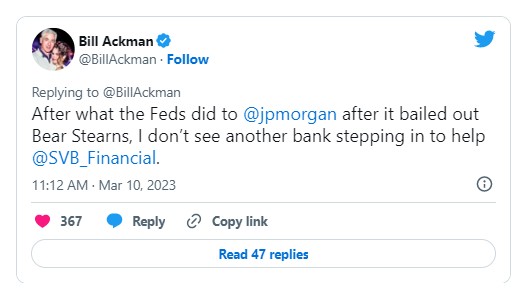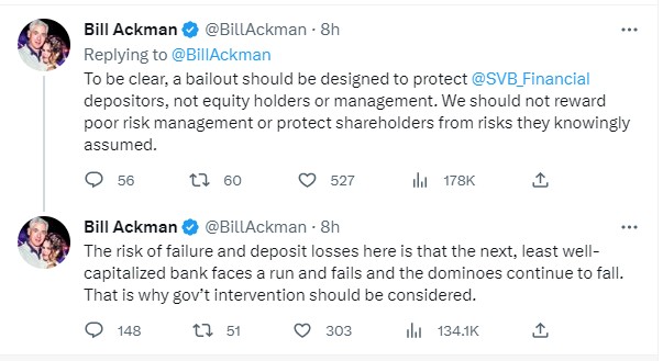 對沖大佬 Ackman:美國政府應該出手救 SVB,否則會有更多銀行倒閉