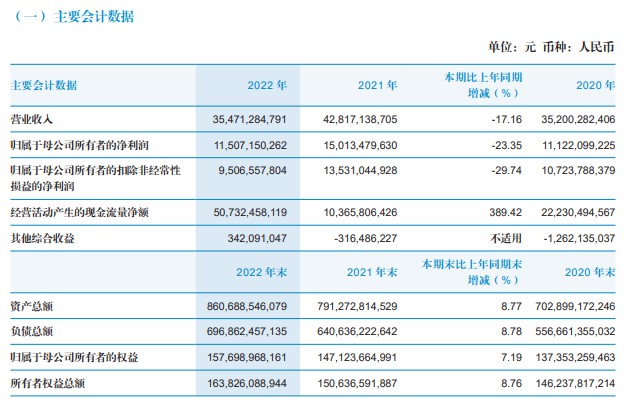 數據顯示,2022 年,國泰君安集團實現營業收入 354.71 億元,同比減少 17.16%;歸屬於上市公司所有者的淨利潤 115.07 億元,同比減少 23.35%。