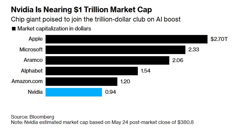 AI 狂潮正將英偉達推向 “萬億美元俱樂部” 但對英特爾和 AMD 助力不大